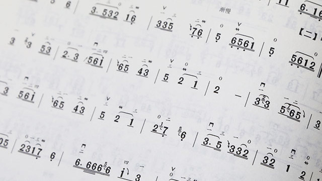 二胡は専用の楽譜「数字譜」を使って演奏します。五線譜が読めなくても大丈夫です。
