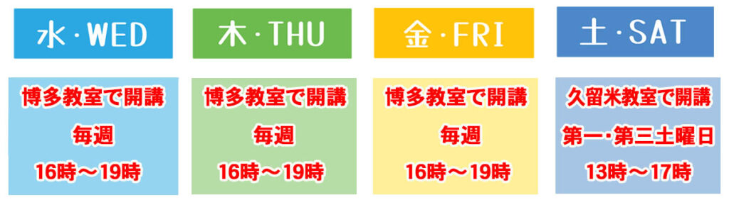 金曜は第一と第三金曜日のみ博多教室開講日です。