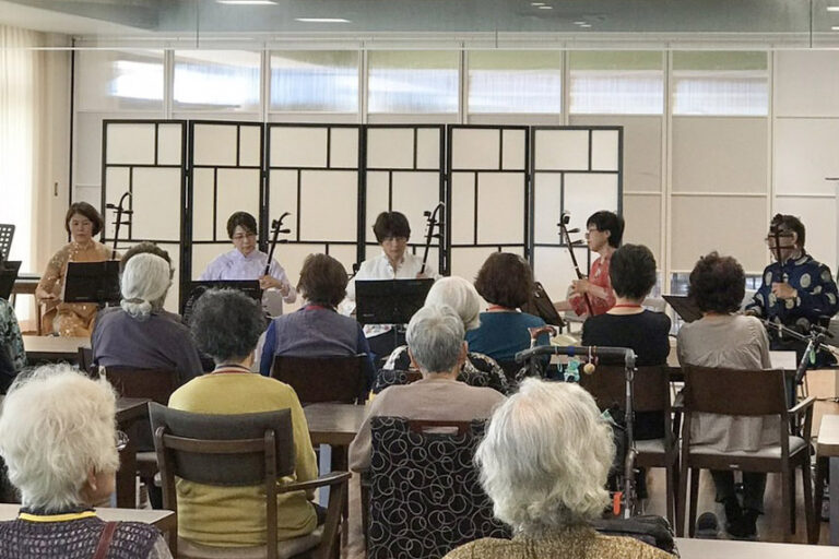 2018年6月12日 老人ホーム 筑前 梨ノ木城での演奏写真